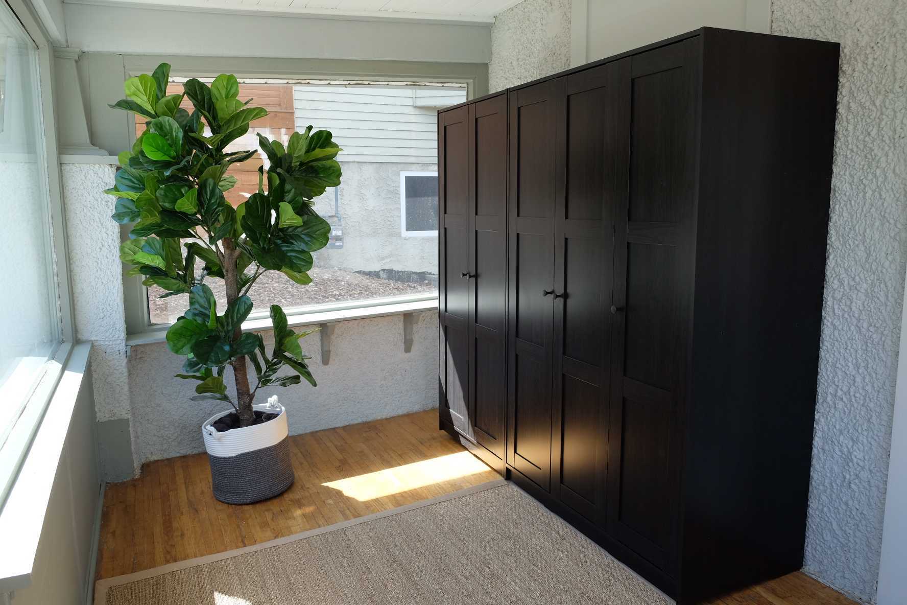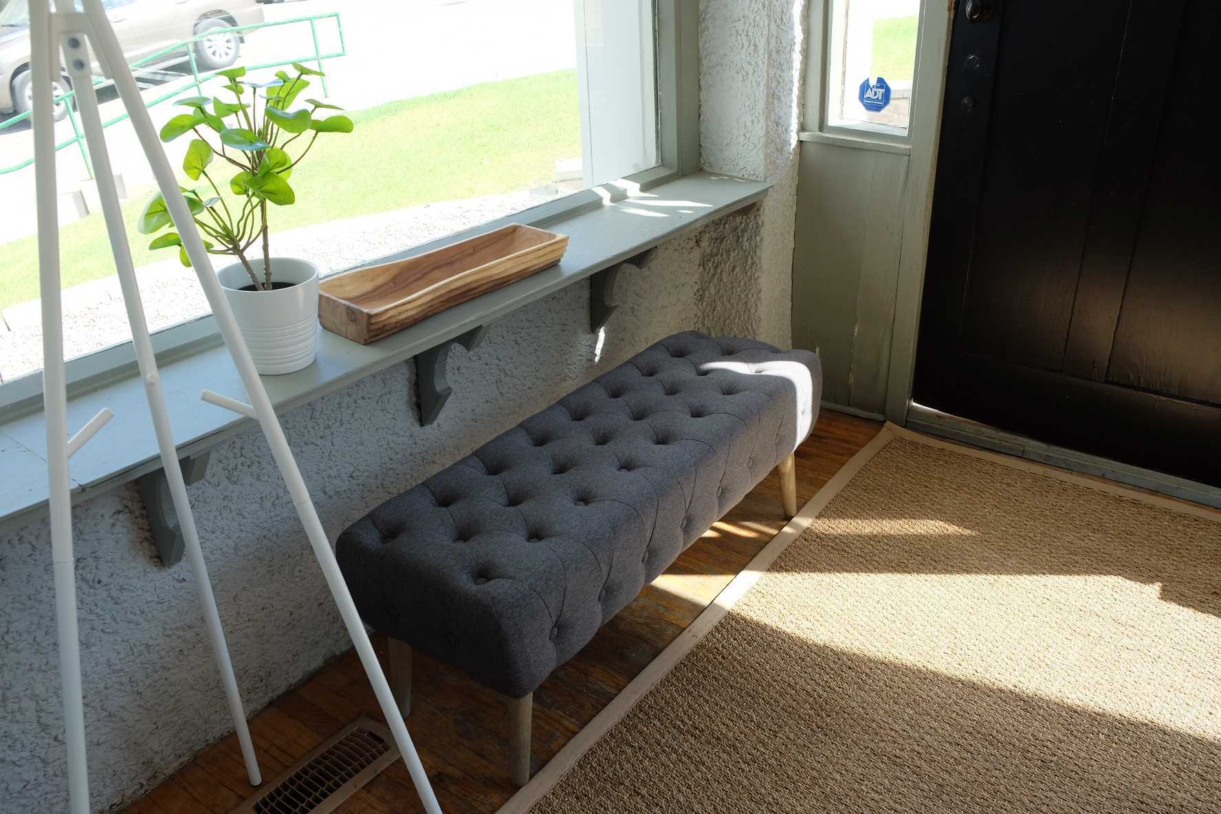 They had a small mat, a coat hanging rack, and shoe racks, but most of the space was going unused. The primary goal was to make this room feel like an extension of their home so that when people walked in, they felt welcome and knew they could leave their coats and shoes here rather than continuing to the inner door. As a secondary goal, I wanted to take advantage of this square footage and give them more storage. Older homes are notorious for a lack of closet space and they have often been renovated to add bedrooms/bathrooms, putting even more demand on the existing storage.