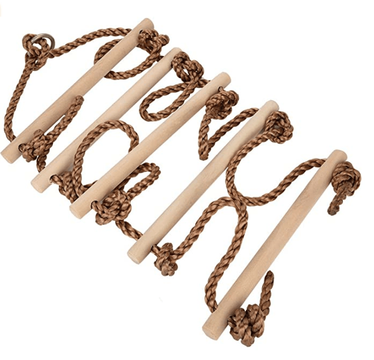 Across from the house we added a cedar 2x6 the existing structural beam above and used these multipurpose hooks for multiple hanging accessories. We can adjust it based on how the kids want to play and the age of the kids in the room at the time. As you can see below, we have lots of types of swings, rope ladder, hanging rings, and a gymnast bar (this is Winn’s favorite!). She has gotten much stronger playing on this.