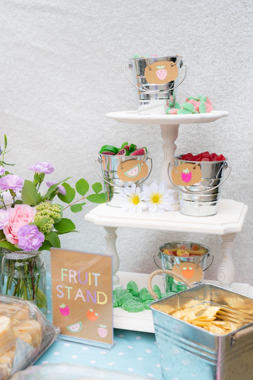 My favorite part of going to the fair as a kid was always the prizes, So i loaded up on candy, glow sticks, bubbles, jump ropes and stickers from the dollar store. The kids got to dig through and choose the prizes they wanted at the end of each game. We labelled the brown paper bags with each child's name so they could add their prizes inside and then take the whole bag when they left. This was such a fun way to send them off with a personalized thank you for coming.