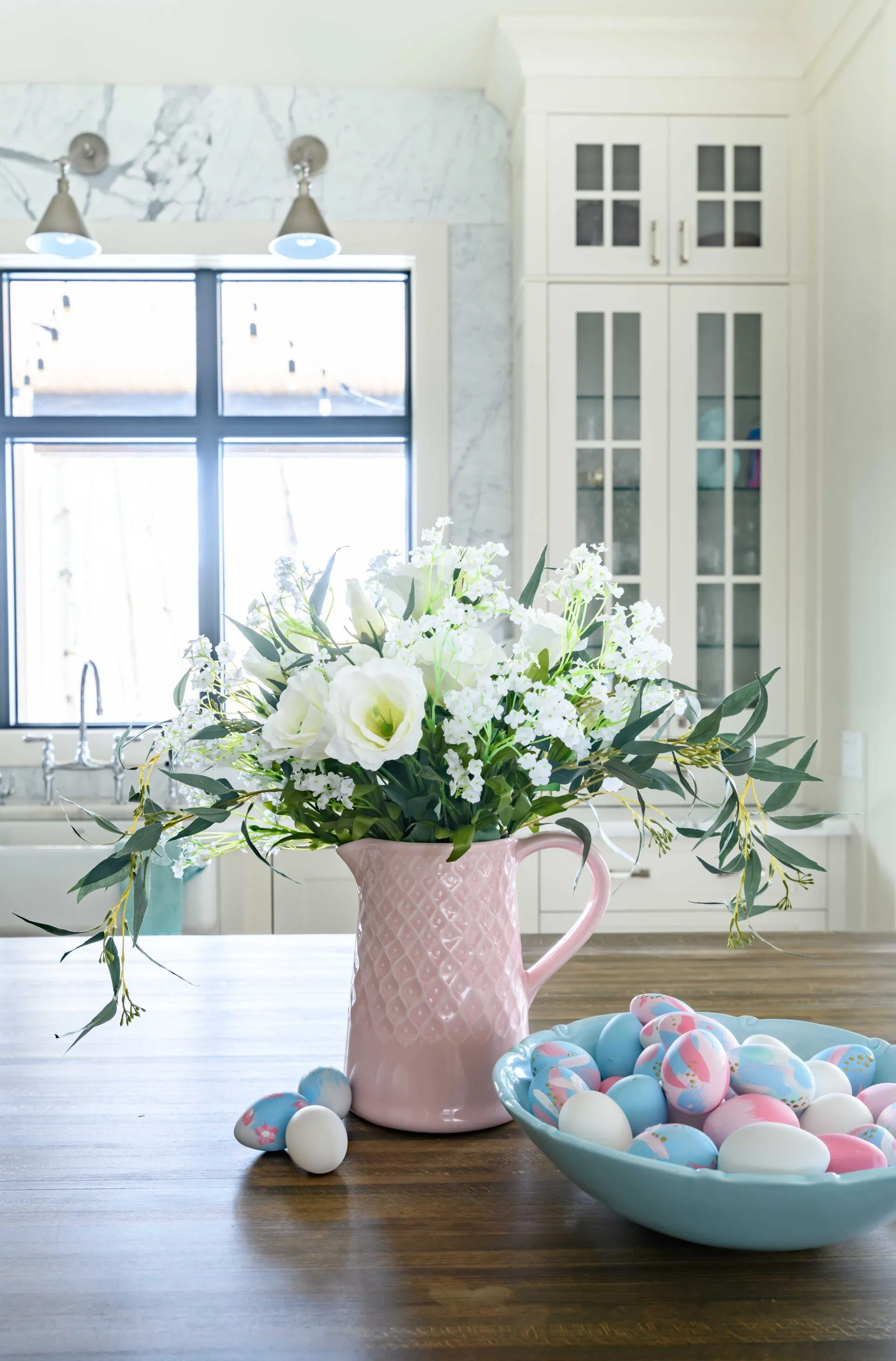 Although I decorate for spring, I don’t add a ton of Easter-specific décor; I prefer to sprinkle in a few muted items to pay homage to the holiday and these painted eggs are the perfect addition.