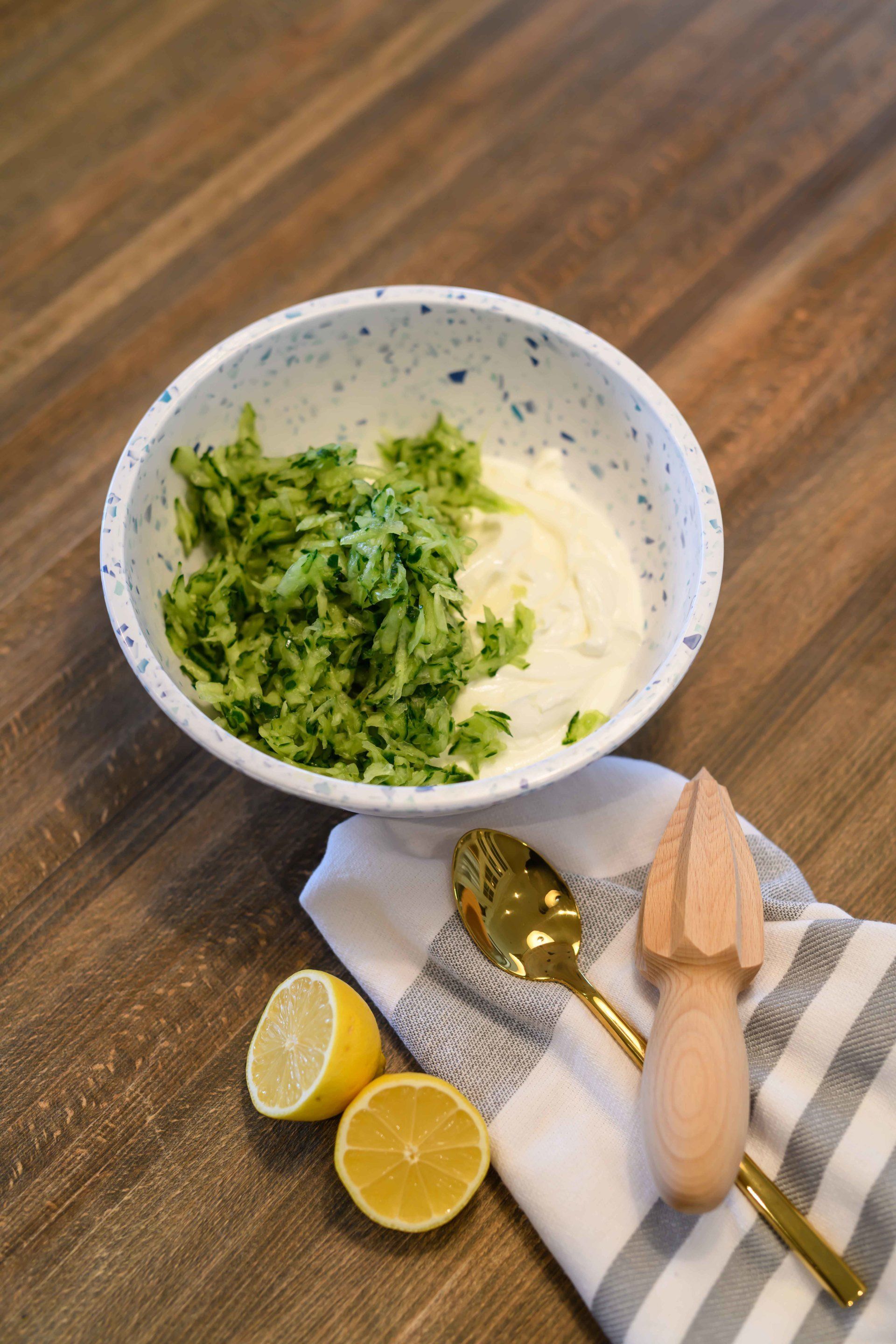 Bake in the oven for approximately 10 - 12 minutes until golden brown and crisp. Allow to cool and store in an air tight container. They are the perfect chip for this Tzatziki dip!